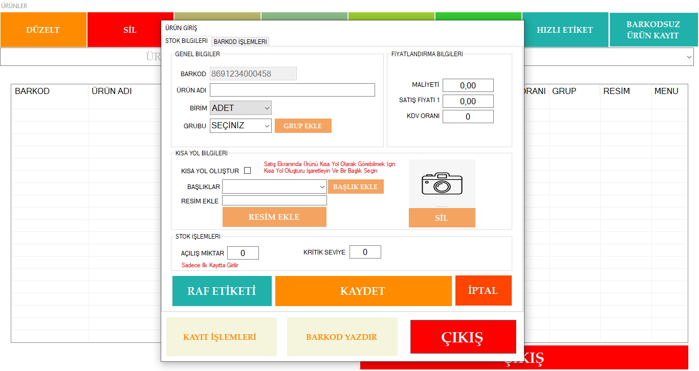 Barkod etiketi olan ürünlerinizi programa kaydedin,