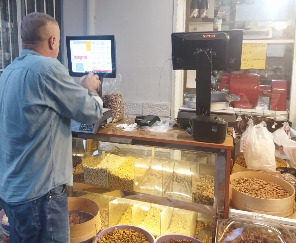 Etiketli terazi (barkodlu) ile satış şekli: Sistemin kuruluş şekli ve bazı önemli noktalarına değinmekte fayda vardır. Öncelikle kuruyemiş satışı yapılan işyerlerindeki alanın büyüklüğü ve personel sayısına göre barkod sisteminizin yapısı belirlenmesi ile işe başlanmalıdır. Şayet geniş alanda çok personel ile çalışılıyorsa barkod sistemine etiketli terazi eklenmesi işleyişin hızlanması kasada yoğunluk olmaması açısından faydalı olabilir. Tabi ki bu gibi durumlarda personel sayısı da oldukça önemlidir. Etiketli terazi ile ilgilenecek personel olmaması durumunda hem terazi performanslı çalışmayacak hem de sistem maliyeti gereksiz şekilde artacaktır.